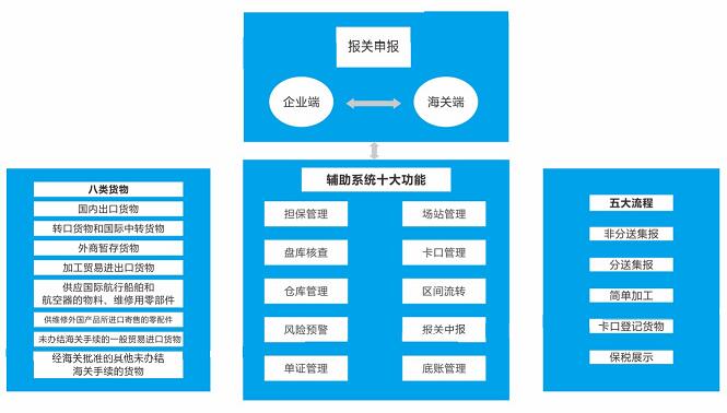 航通智能保稅物流中心輔助監(jiān)管系統(tǒng)是以實現(xiàn)貨物快速有序地流轉、高效運作、有效監(jiān)管為目的的應用輔助管理系統(tǒng)。該系統(tǒng)以保稅物流中物流賬冊為核心,以進出保稅物流中心的貨物物流為主線,滿足保稅倉儲、轉口貿(mào)易、國際中轉、國際采購、分撥和配送,以及流通性簡單加工和增值服務等業(yè)務。